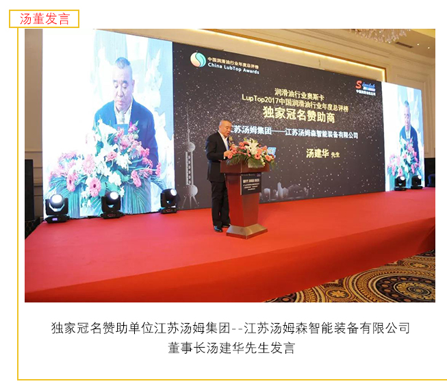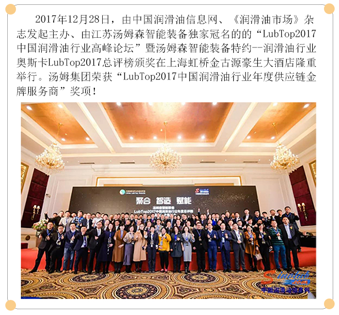 【喜訊】湯姆再次榮獲 LubTop2017中國潤滑油行業年度供應鏈金牌服務商獎!