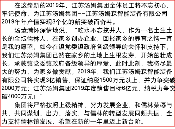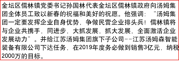 金壇區儒林鎮政府領導班子來湯姆集團拜年!
