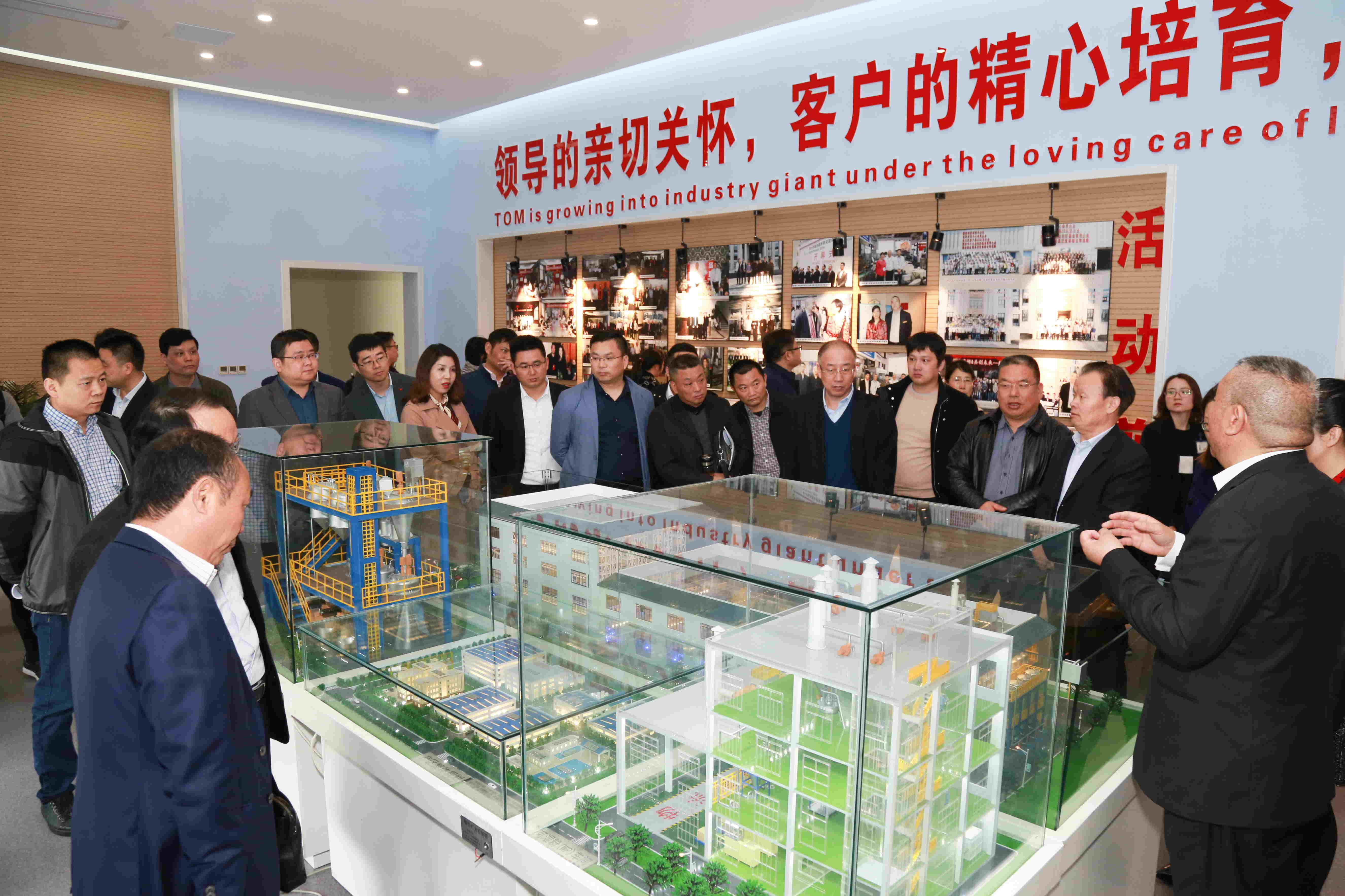 會議結(jié)束后,江蘇湯姆集團(tuán)董事長湯建華先生、江蘇湯姆森智能裝備有限公司總經(jīng)理王芳熱情地邀請了與會代表參觀了公司的生產(chǎn)車間與展館。在集團(tuán)董事長湯建華先生、江蘇湯姆森智能裝備有限公司總經(jīng)理王芳女士、副總裁湯建定先生及涂料事業(yè)部總經(jīng)理汪亮亮先生的陪同講解下,與會代表們了解了江蘇湯姆的建立、起步、發(fā)展壯大的建設(shè)歷程,紛紛感嘆于江蘇湯姆集團(tuán)的發(fā)展速度!