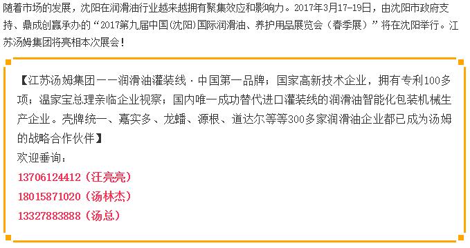 【展會信息】江蘇湯姆集團亮相沈陽國際潤滑油展,歡迎新老客戶光臨!