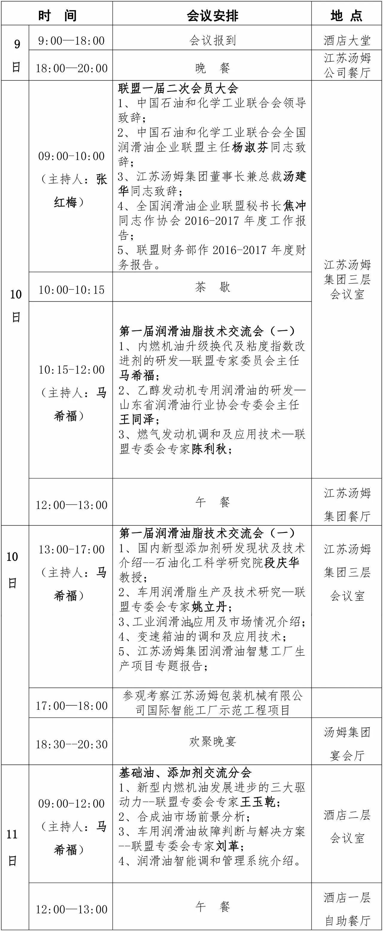 會議邀請丨江蘇湯姆集團(tuán)協(xié)辦全國潤滑油企業(yè)聯(lián)盟一屆二次會員大會暨 第一屆潤滑油脂技術(shù)交流會