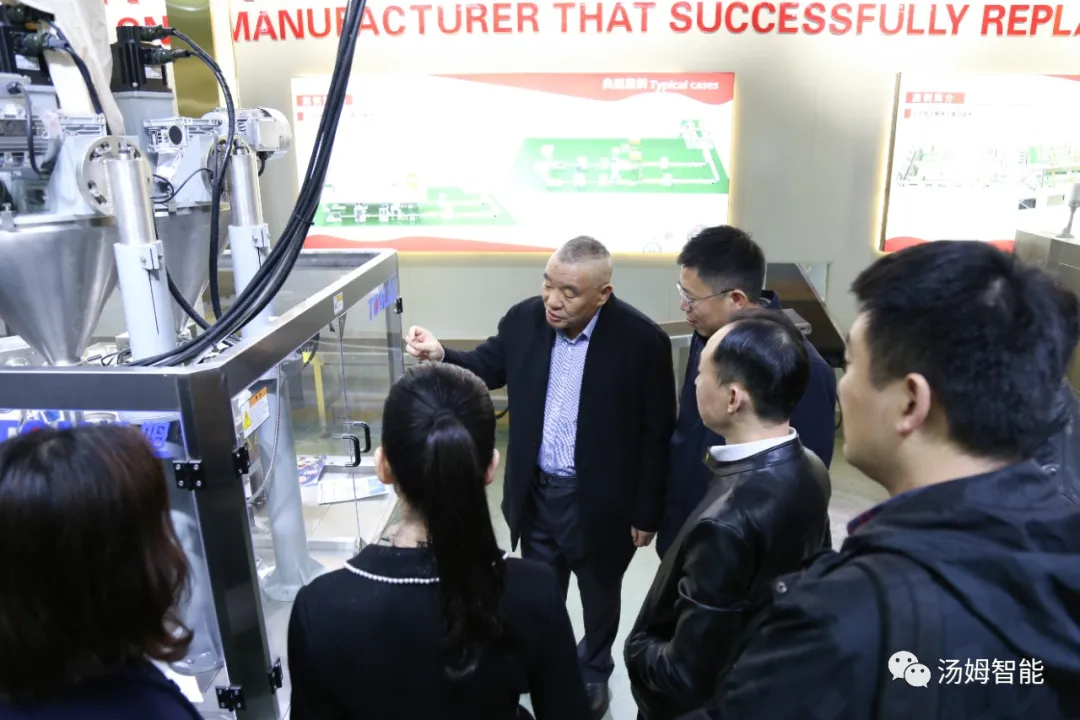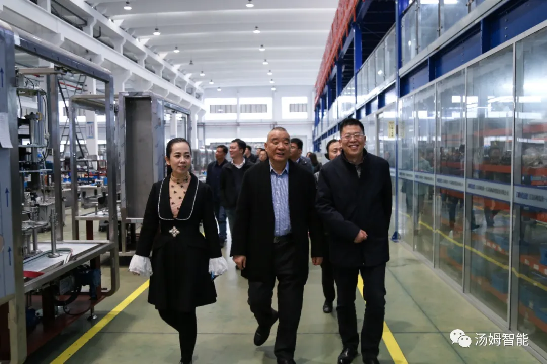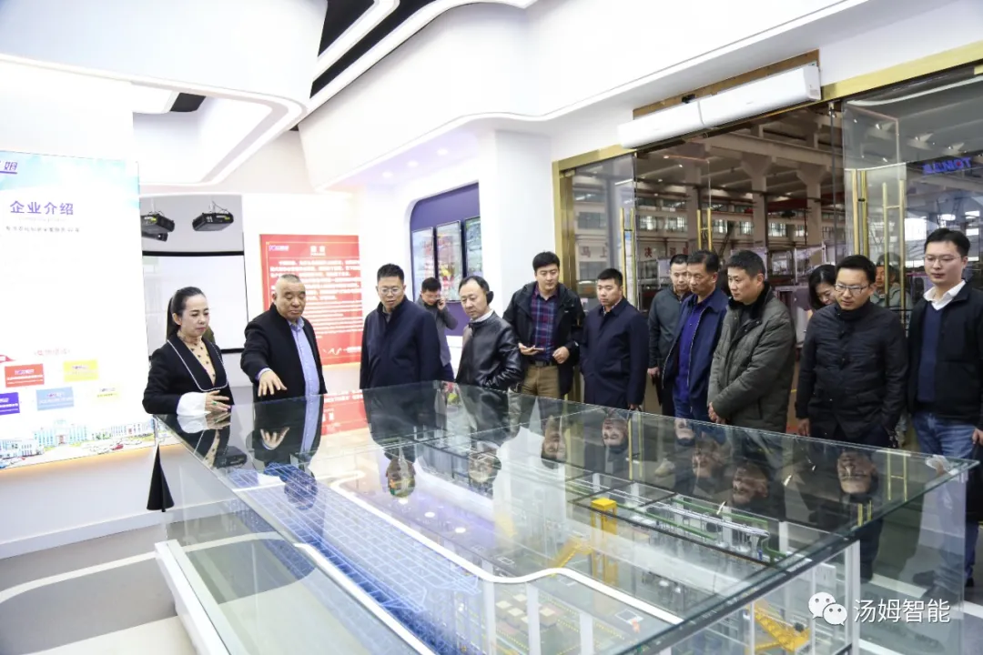 在江蘇湯姆集團董事長湯建華,湯姆森總經理王芳,集團財務總監(jiān)吳芳的陪同下,陳區(qū)長一行參觀了湯姆集團的科技展覽館、重點參觀了專利墻和榮譽墻,以及湯姆集團的樣板車間和一期二期100畝生產基地。董事長湯建華向陳區(qū)長介紹了湯姆集團的發(fā)展,重點闡述了在智能制造上面的科研、創(chuàng)新、以及在客戶現(xiàn)場的使用案例。