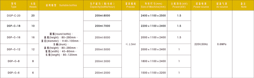 DGP-C直列式常壓灌裝機技術參數